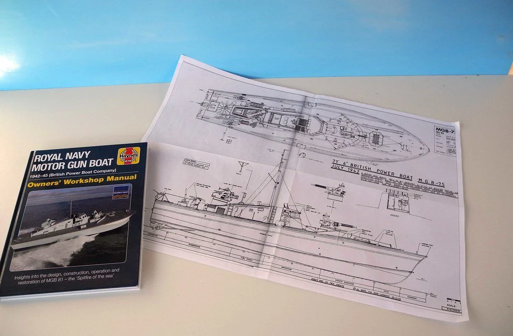 This project started with the Haynes Manual I'd bought while researching the Vosper MTB. This excellent book contains reproductions from two shipyard drawings and these were enough to challenge me to build it. Unusually, there are no commercial model plans available but I have a plan to prepare a set and will happily advance that plan if anyone is interested.